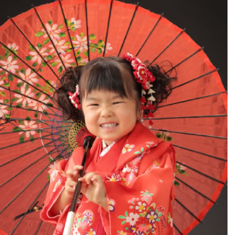 かわいい着物を着て、ちょっとおすまし。すこやかな成長の記録の1ページに。